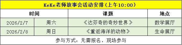 ①线下活动:公益活动,请提前通过武汉科学技术馆官微或武汉文旅码小程序预约扫码入馆。参加活动请注意展厅广播播报,并在指定地点签到集合。名额有限,欲报从速!